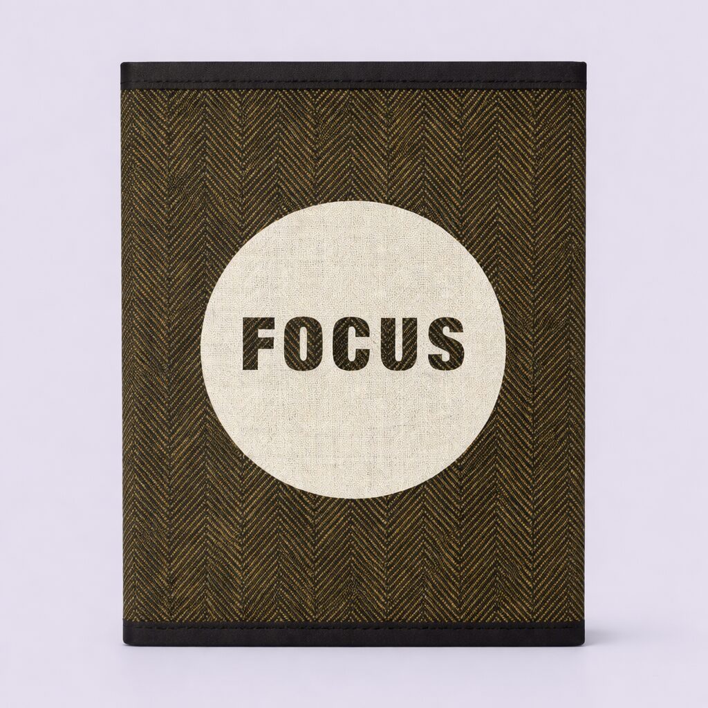Moreover, this handmade Stock Fabric Olive Focus Notebook fits beautifully in workspaces, study desks, travel bags, or creative corners. When used for journaling, note-taking, sketching, or planning, it adds a subtle layer of style and functionality, making it perfect for both personal and professional use. Its natural composition and timeless design also complement a wide range of lifestyles and creative practices.