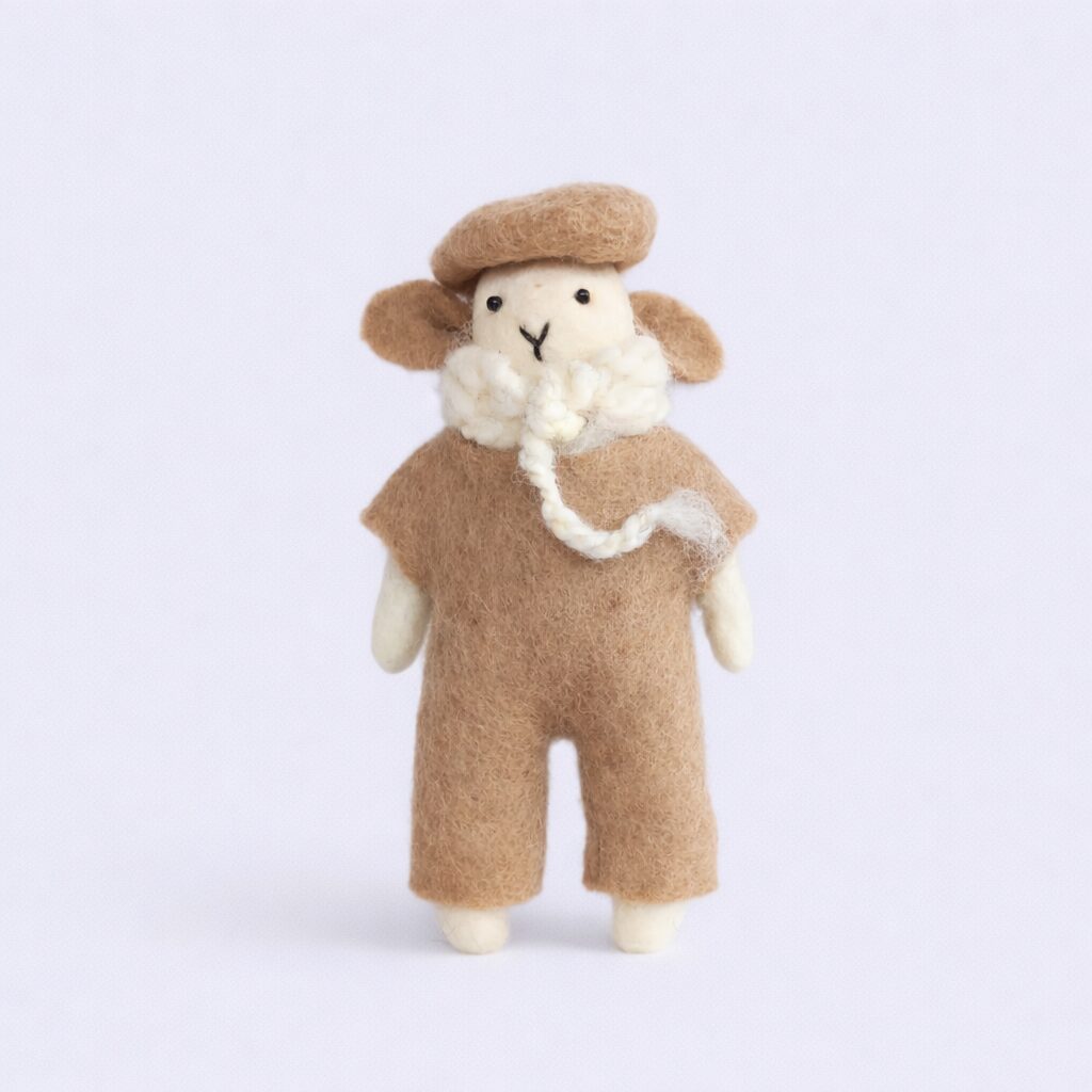 Moreover, this handmade sheep male straight leg doll fits beautifully in children’s rooms, nurseries, or cozy play corners. Its soft and lightweight design allows children to easily hold, carry, and hug it during playtime. The friendly doll shape encourages imagination and storytelling, helping children create joyful and creative adventures.